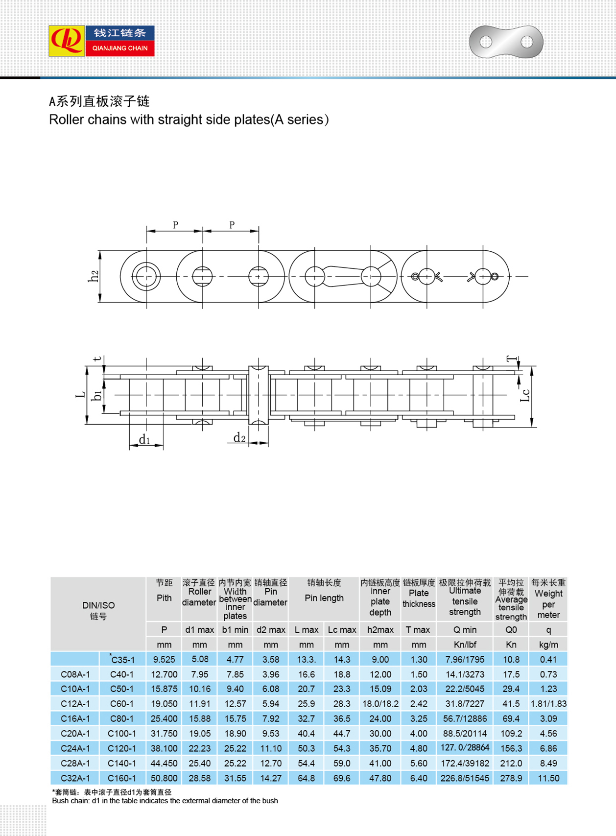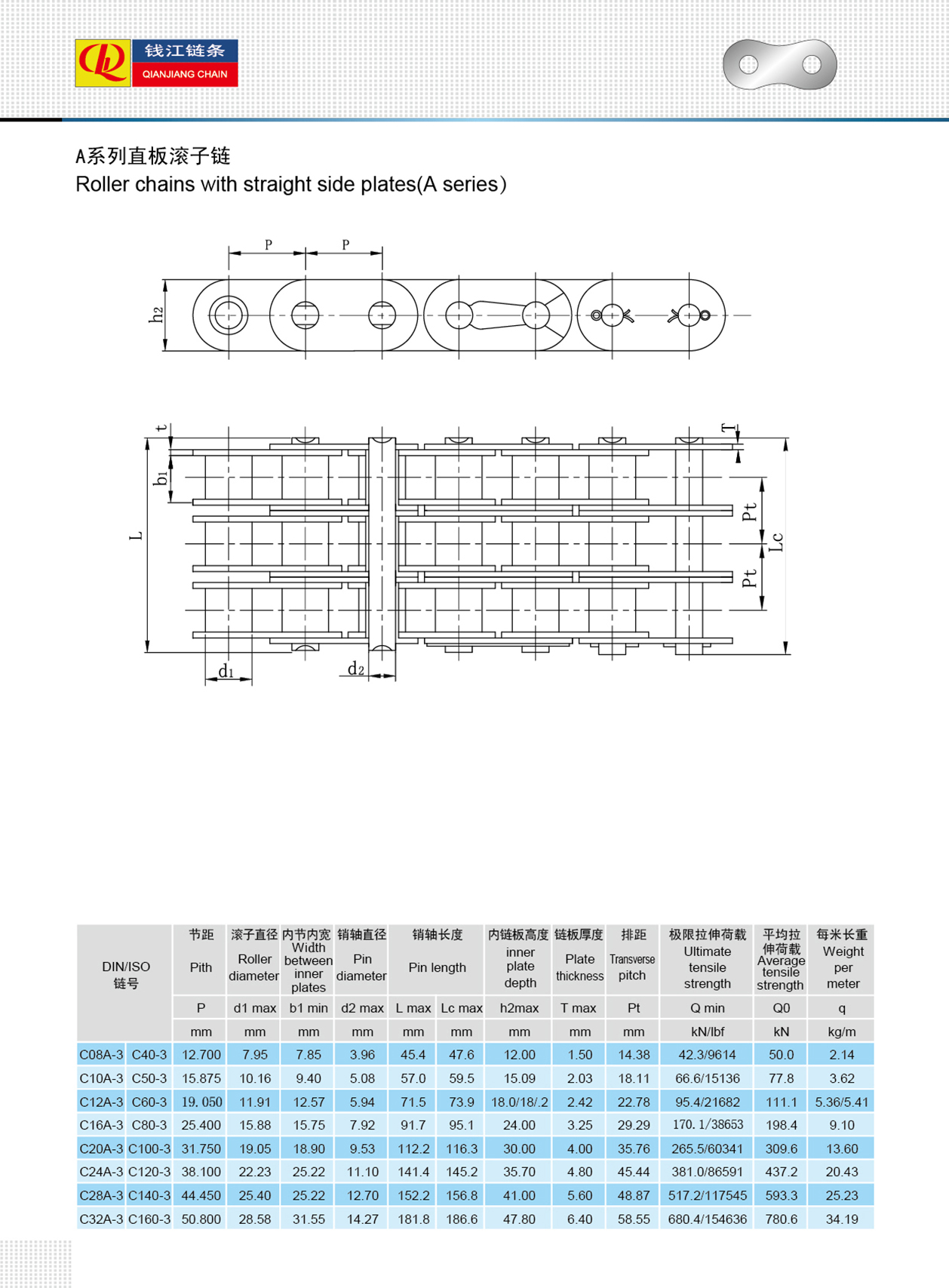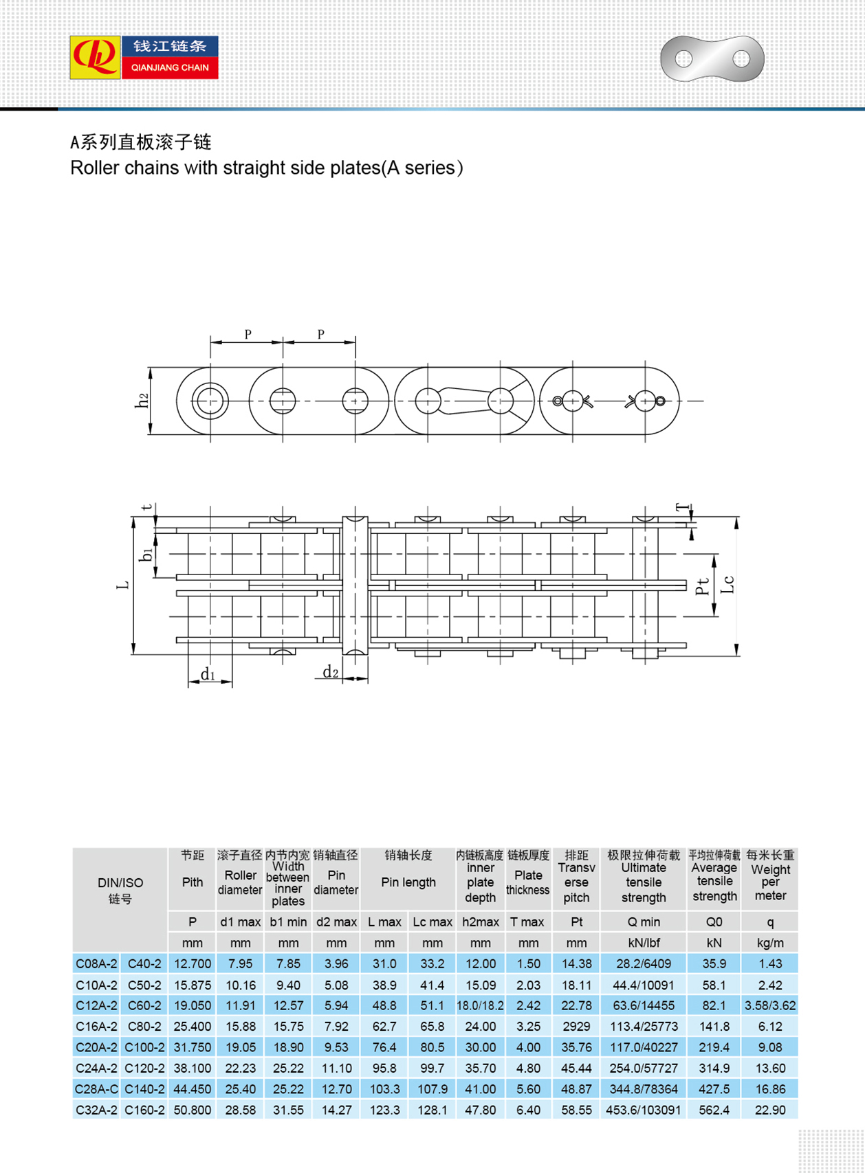 Rullaketjut suoralla sivulevyllä ( A - sarja )