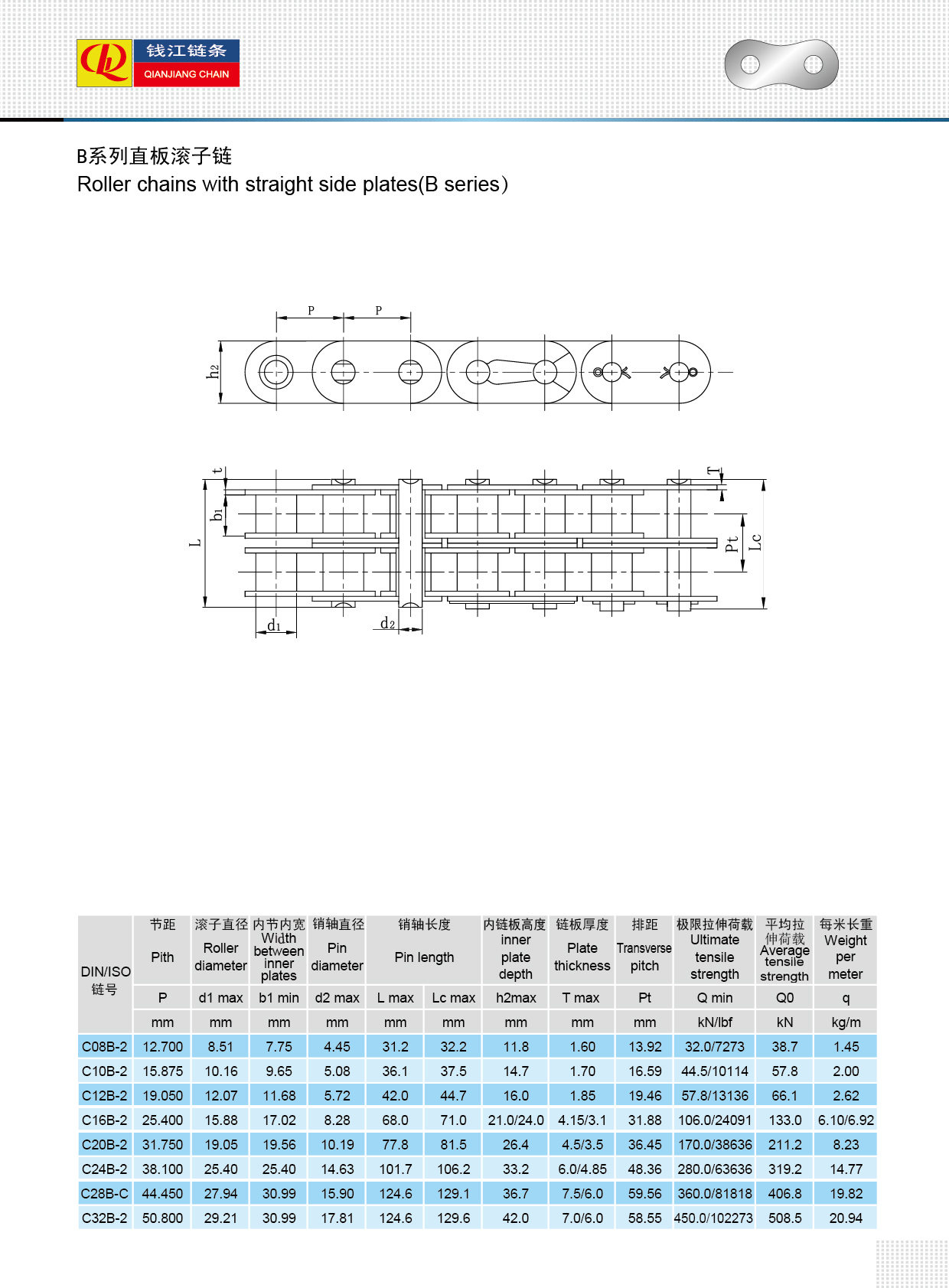 Rullaketjut suoralla sivulevyllä (B-sarja)
